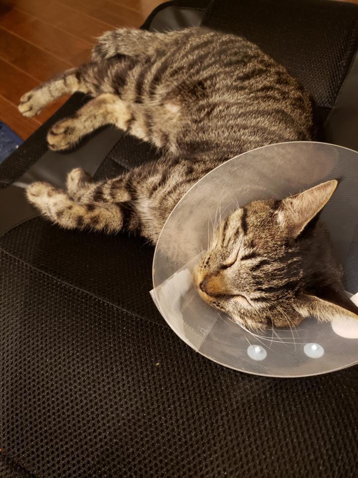 その後、吐くことなく、傷の悪化もなく、順調に抜糸でき、カラーも無事とれました。