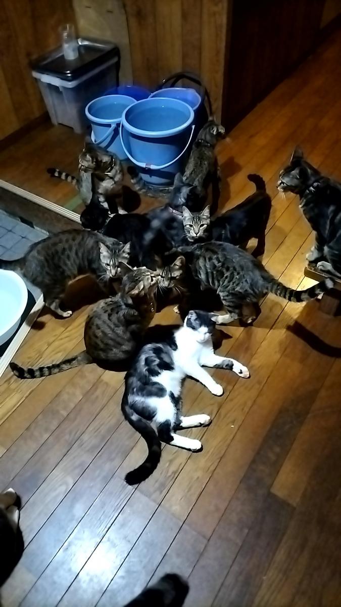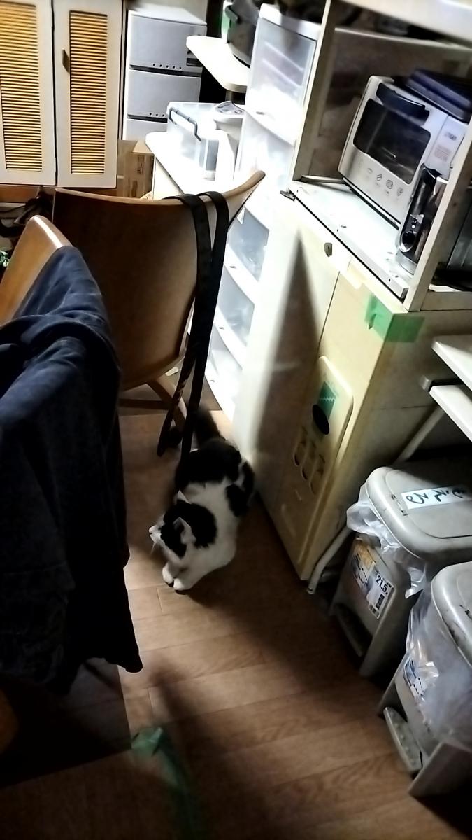 ご飯 食べると 野良パパさん白黒くん キッチンに 入れてもらえました!