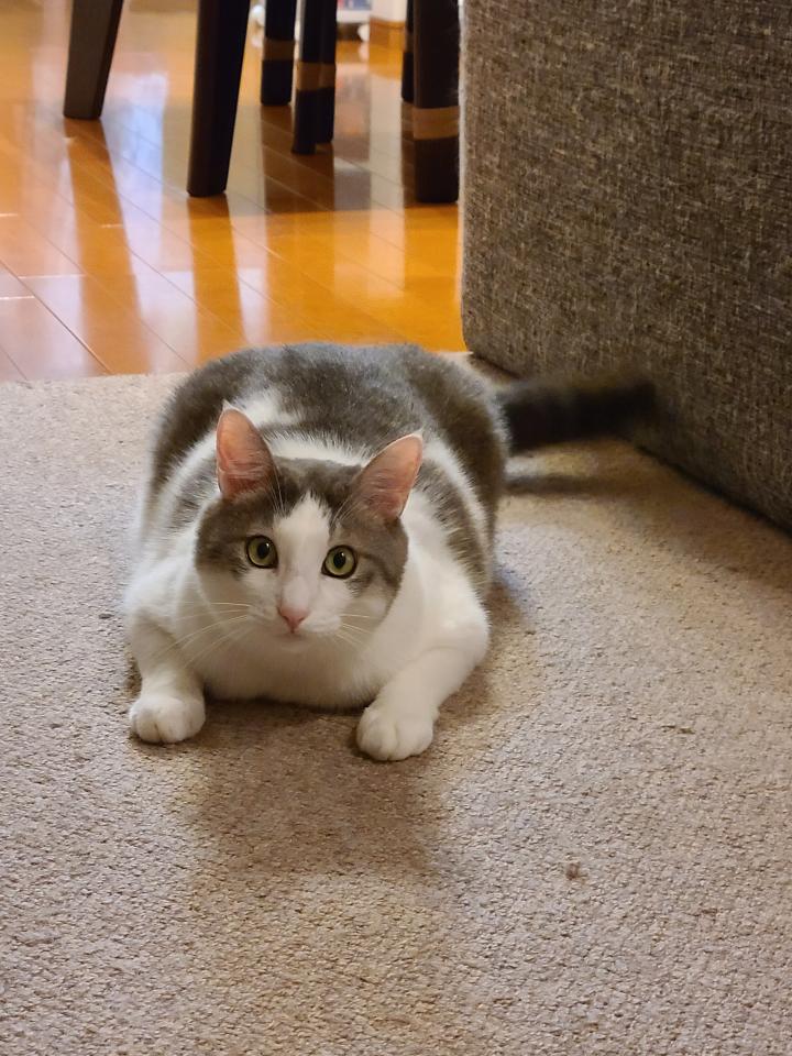 更に逆再生とゆー荒業(伏せの状態から後ろ足を抱えフローリング引き回し)