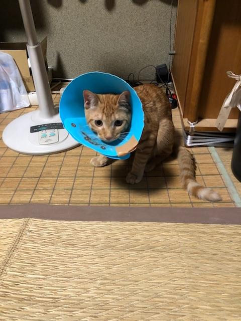 暫くカラー生活。先住猫達が怖がりシャーの洗礼と相手してもらえない。