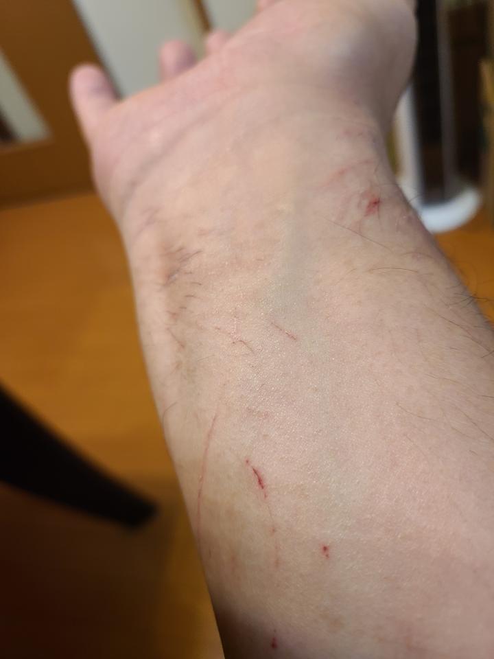 昔は手の甲が傷だらけでしたが最近はコッチ