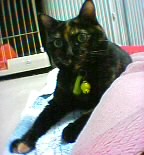 しばらくは座布団とフリースブランケットで寝ていたチビスケなんですが、今日、某ペット屋でカドラーベッドが特価780円!!だったので、さっそく買ってきて置いてみました。