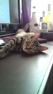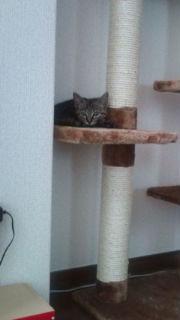 人恋しくなったのか、触れるか触れないか位のビミョーな距離をとってじーっと私の顔を見ています。わざと気づかないふりをして、少し時間を置いてチラっと見ると、zzz…(≧▽≦)☆また見直すとお腹丸出し。