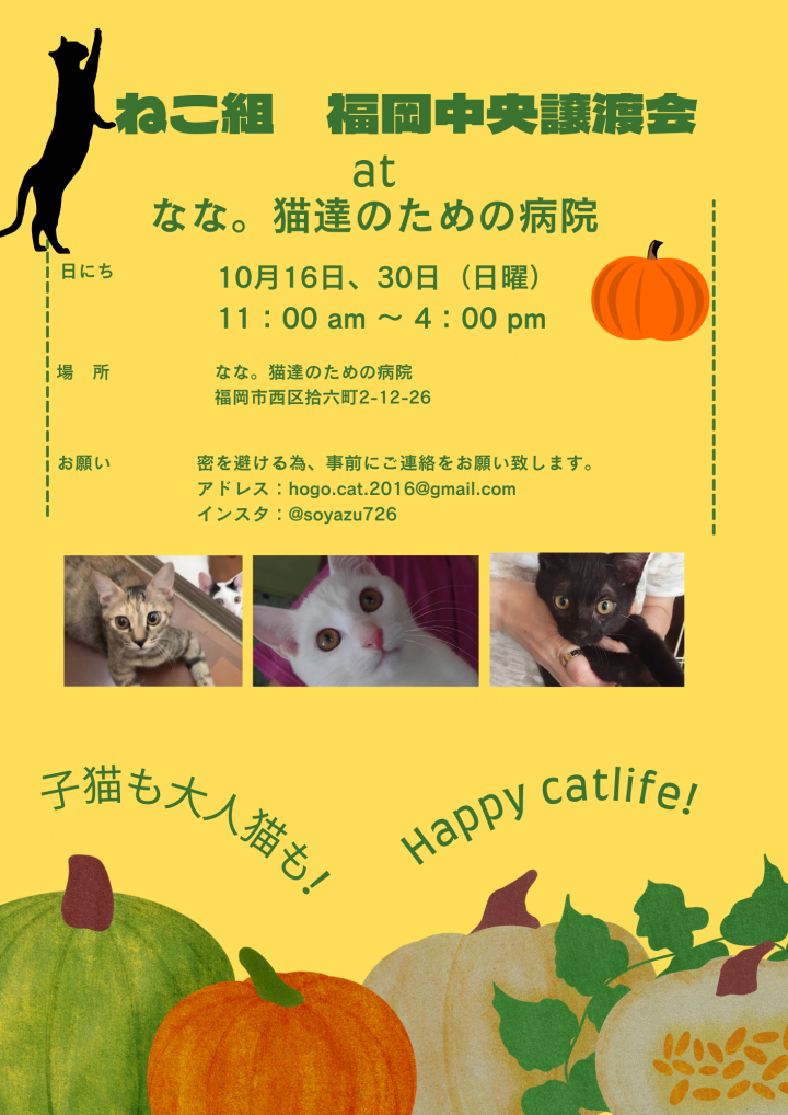 なな。猫達のための病院さんの一室を借りての譲渡会です!