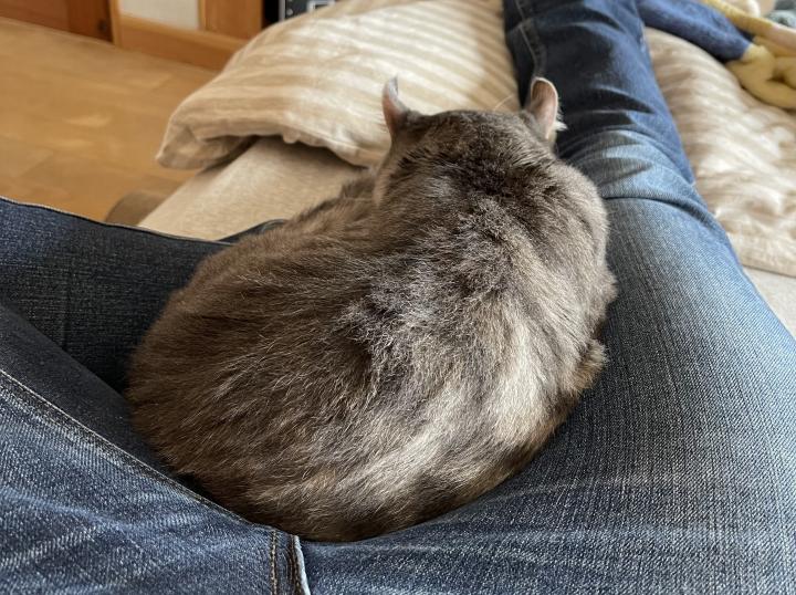 その後疲れてちょっと転がれば、ぶんたは生乾きの状態で寄り添って寝てくれるなど絶妙な嫌がらせもしてくれて。笑