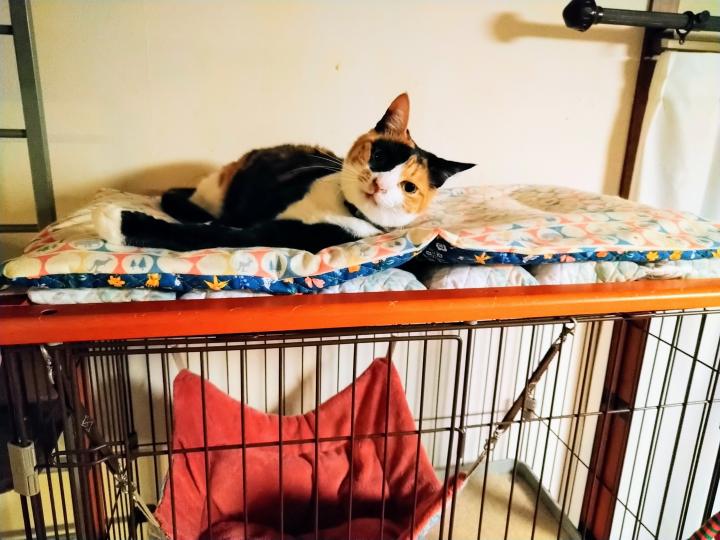 ケージの上で寛ぐ姿を見たのは何年ぶりかな?