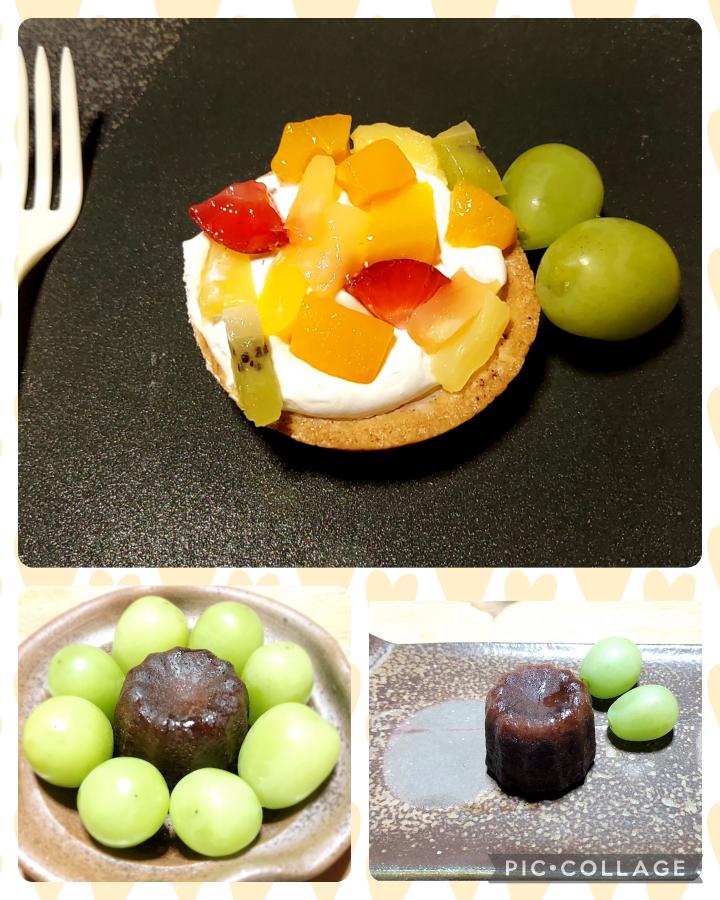 選ばれなかった器と買ったお皿等はローソンで買ったカヌレとシャインマスカットを乗せて、オシャレデザートを堪能しました😍