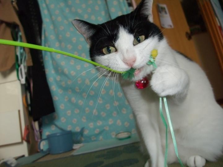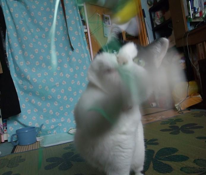でも、壊れかけでも十分楽しいらしく、必死に動きに合わせてじゃれています。