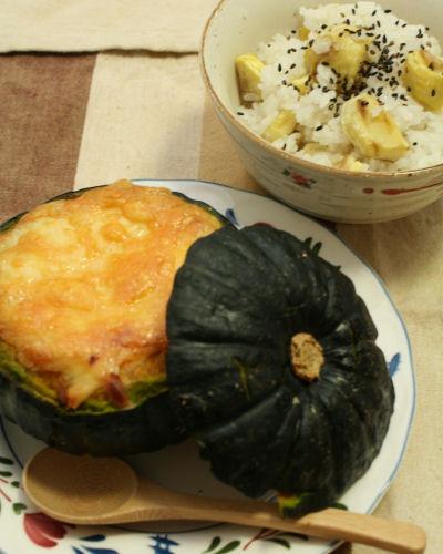 栗ご飯&坊ちゃんカボチャのグラタン☆