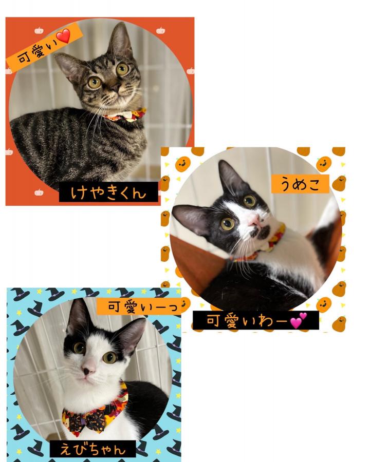 ハロウィン柄のネコ衿をつけて参加したうちの保護猫達は今回残念ながらご縁がありませんでしたが、次こそはお声が掛かるよう、アピール頑張ります!