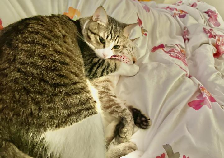 あたためてあげるよーってボーが乗ってるけど、さすがにベル潰されてるよ🤣