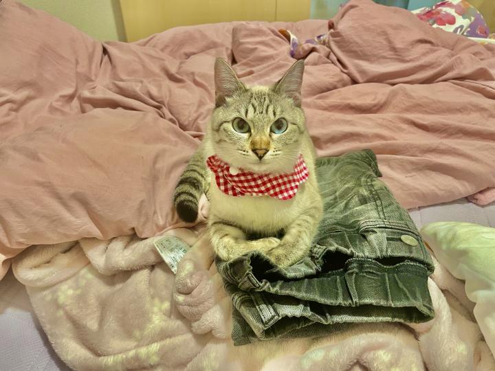あたしが出かける前に準備していたらベルが服あたためてくれてた🤭