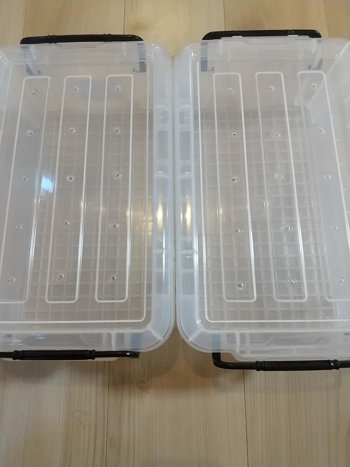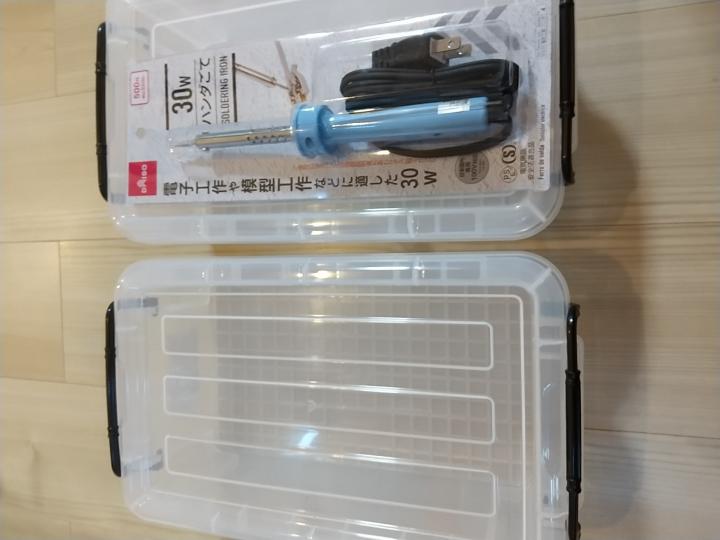 ホームセンターでロック機能付きプラケースを購入し、ハンダゴテで通気孔の穴を開けました😃