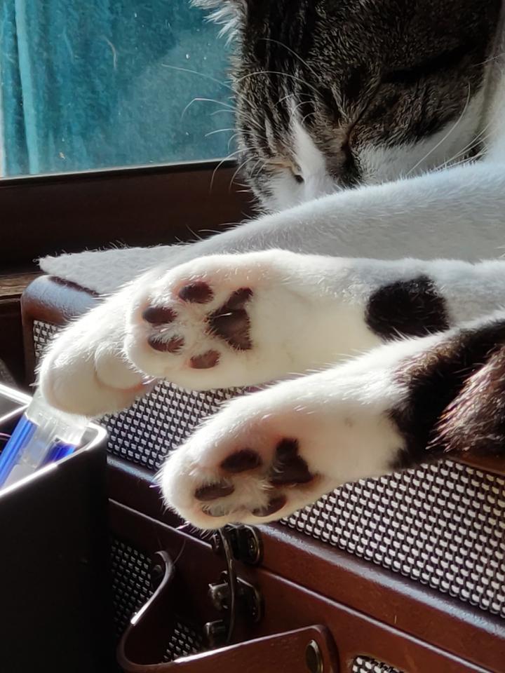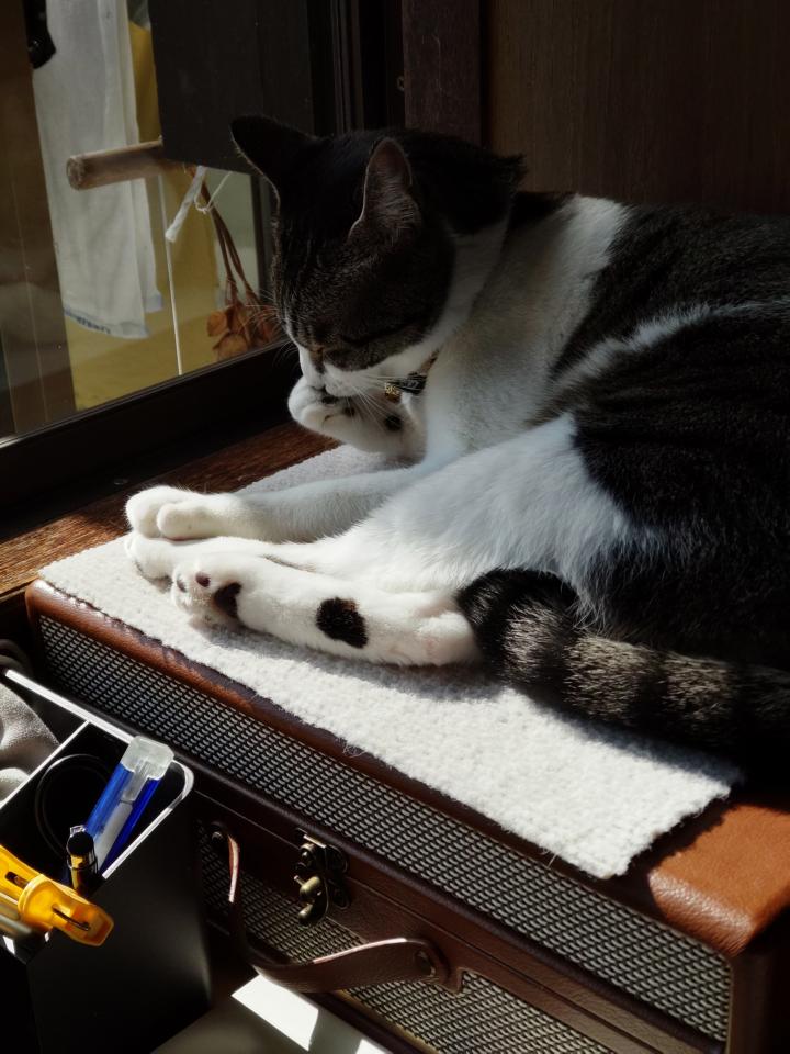 リンちゃんがチェストの上でお昼寝をしていたのてわしはこっそり部屋の戸を閉めて洗濯物を取り込んだ。ほぼ歩けないわしは、洗濯物を取り込むのは決死の覚悟が要るのだ。