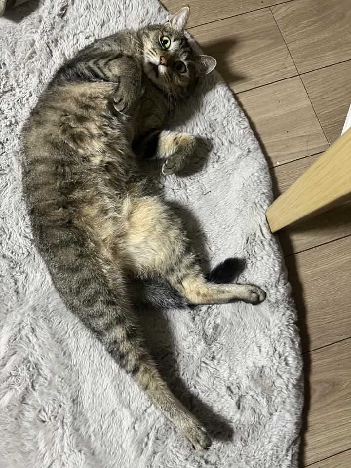 絨毯の上で伸び〜