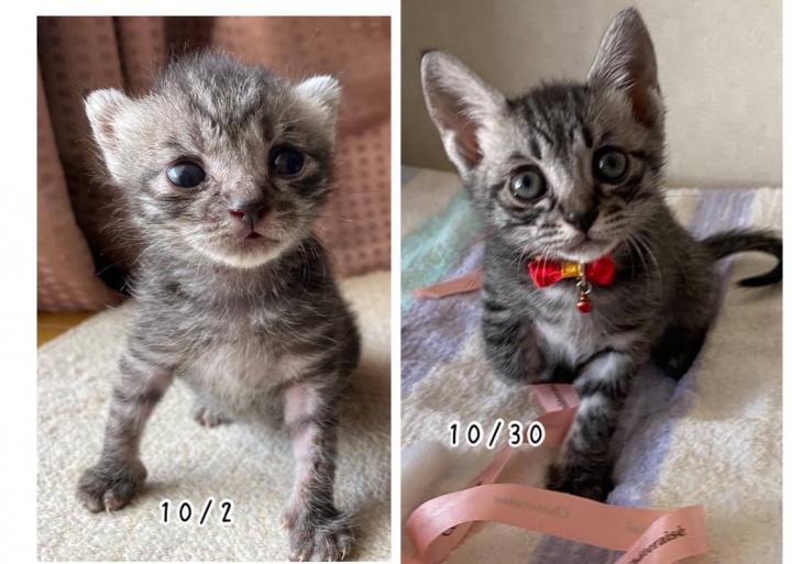 今日は台風前に捨てられたみーちゃん、アッシュちゃんと里親様募集中の保護猫達のノリノリハロウィンモードの投稿です🎃