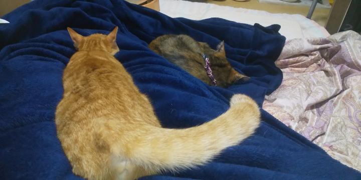 時々中にも入ってくれるんだけど、2にゃんが入ると何故か中で取っ組み合いのジャレあいが始まり、最終的に外に出ます😅