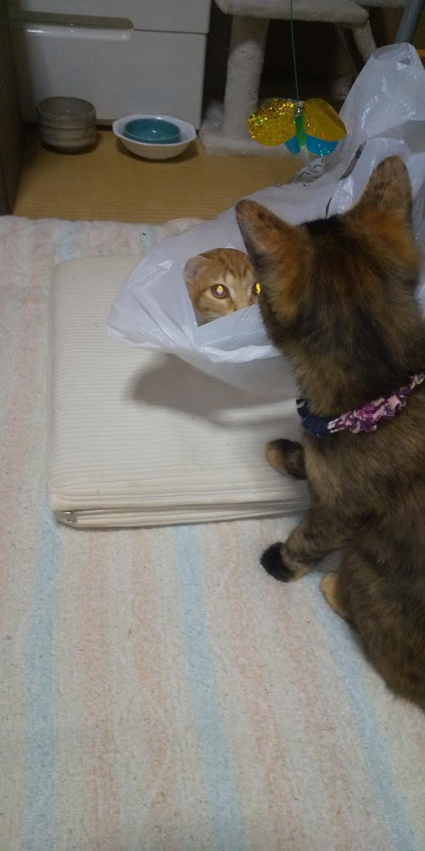 でも、すずねちゃんの場合、中には入らなくて中に玩具やおやつの外袋を隠します😂
