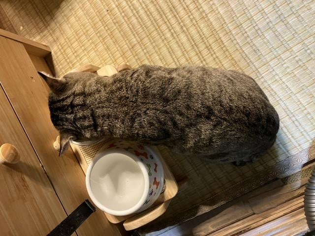 スバルお坊ちゃん冬籠り?体重が5.6キロから6.6キロへ食べてる姿を見ていたら ヘチマか一升瓶に見えてきました。キャットタワーも使ってくれずリードで散歩はしているけどご飯も100gを以前は1日2回でしたが今は100gを4回に分けて与えてます。