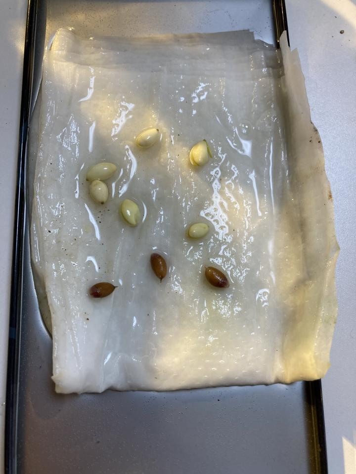 この子はスーパーで買ったレモンから採取した種から育てていますこんな感じで硬い殻と薄皮を剥いで水につけて発芽させます