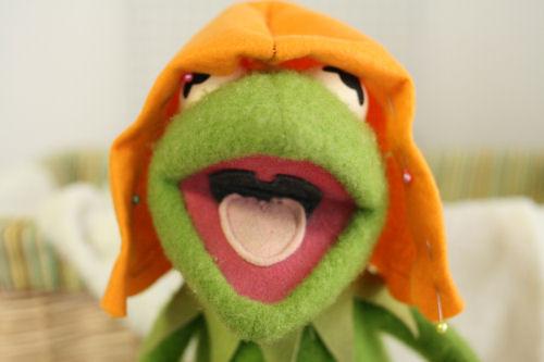 仮縫いの段階でカーミット(我が家ではミカエルビッチの名)に
