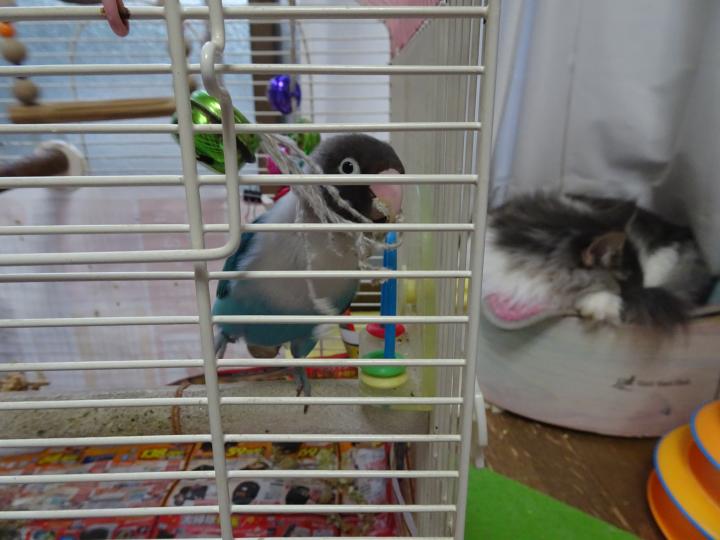 18時すこし前、バタバタバタッ という音がして、見ると、ブルボン🐤が カゴから出で飛んでたんです( ゚Д゚)