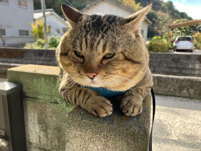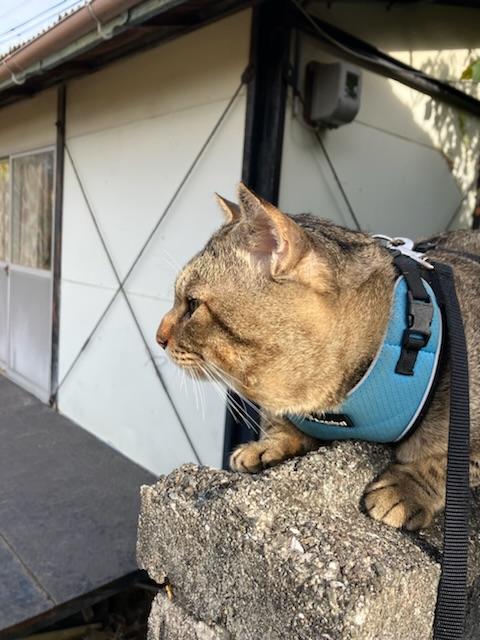 スバルお坊ちゃん今日も軽快にお散歩中!塀に登って一休み!