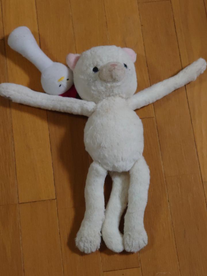 右肩に何かついてる?うん。こないだダ◯ソーで買ってきたペットのおもちゃだって。