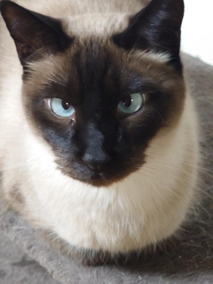 シャムの目は大体青いですが、うちの子のは少し薄めでアイスブルーっぽい。