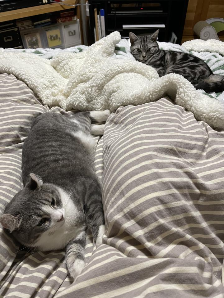 早朝は主張の激しい猫ズですが、この時間帯はまったりなの?