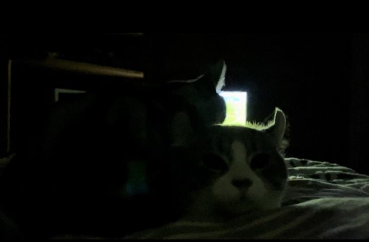 目が覚めたら0:30で、起きようとしたらこの光景。