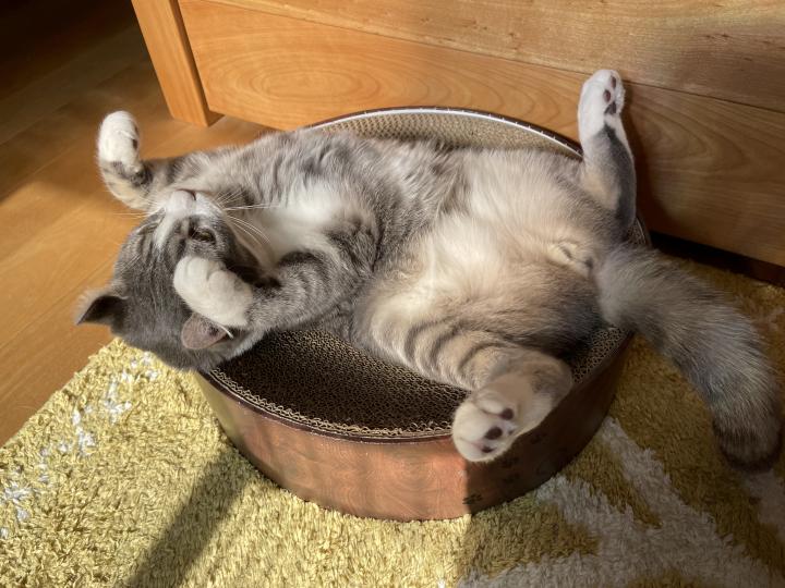 「すごく可愛い子ですね、確かにお餅ですね〜(寝転ぶ姿がつきたての餅と私が言っていたので)」