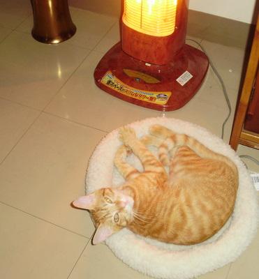 病院から戻ってからずっとヒーターの前で休んでいる様子。