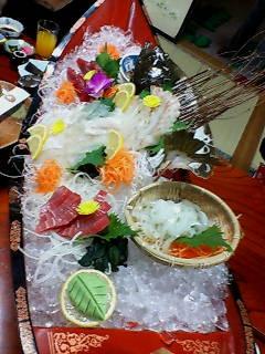 法要が終わり、旅館(民宿?)で御飯だったのですが、そこで出された1人前のお料理の他に舟盛りを頼んであったのでこちらも頂きました。