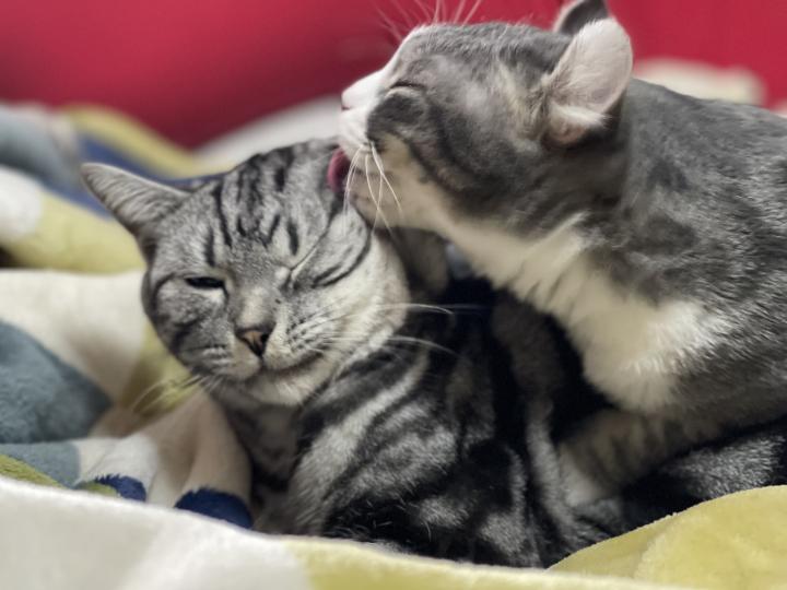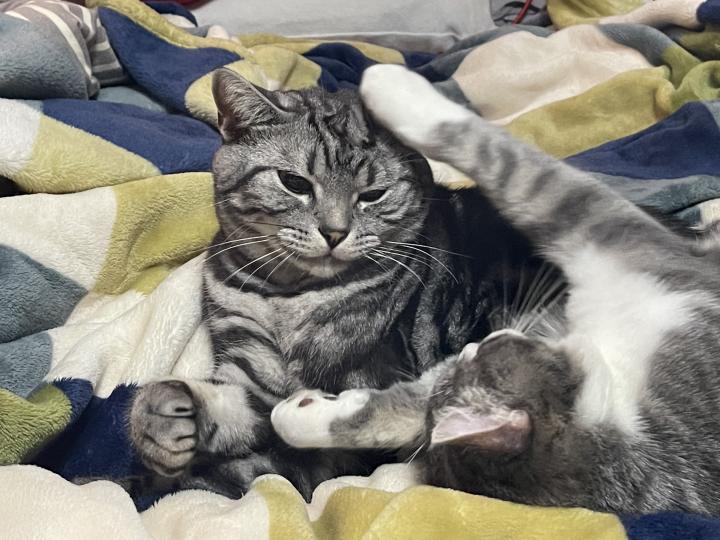 ぶんたからの「こた、ありがと!」のペロペロもありましたし(なおこの後取っ組み合いに移行しました、いつもながら)。