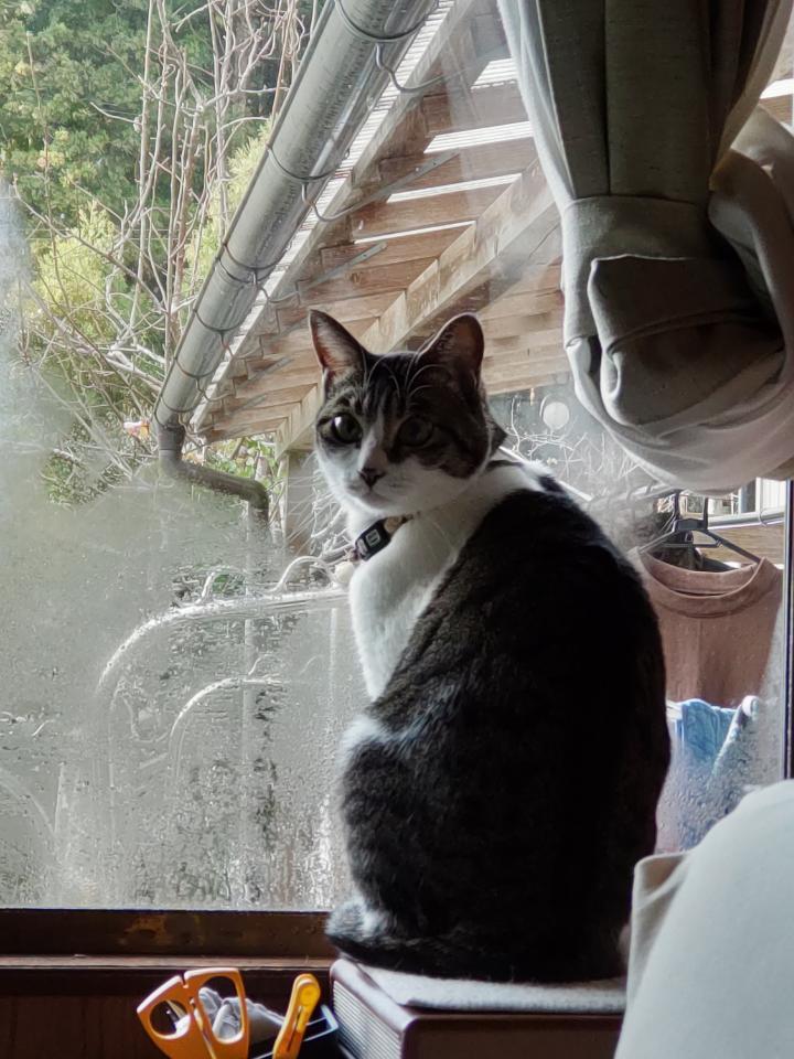 今年最初の雪を窓辺で珍しそうに眺めているリンちゃんでした。