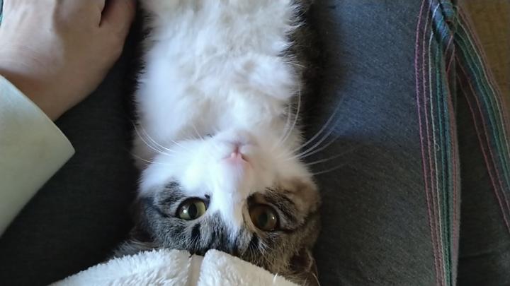 この子もとっても人懐こかったので、てっきり「茶トラと一緒に脱走したに違いない」と思ったのですが…、それは違ってました。保健所にも問い合わせもありませんでした。小さかったので仔猫かと思い病院に連れて行くと、「歯の様子から1歳にはなってる、小さいけどね」。その時2.7キロ。でも慣れてるから里親さんが見つかるかも、とりあえずワクチン接種をしてもらったところ、その夜過呼吸になったのです。近隣に夜間みてもらえるところはなく、しかもわたしはちょっとお酒を飲んでいる、いったいどうしたら。すがる思いで猫友に電話したら、彼女の知り合いが行っているという山口市で夜間見てくれるところまで往復で連れて行ってくれました。しかもその知り合いのご夫婦まで同席してくれて(;_;)。結果たいしたことはなく(環境が変わったからですかねー、樣子を見てあげてくださいね、ということでした)、本当に感謝してもしきれない夜になりました。