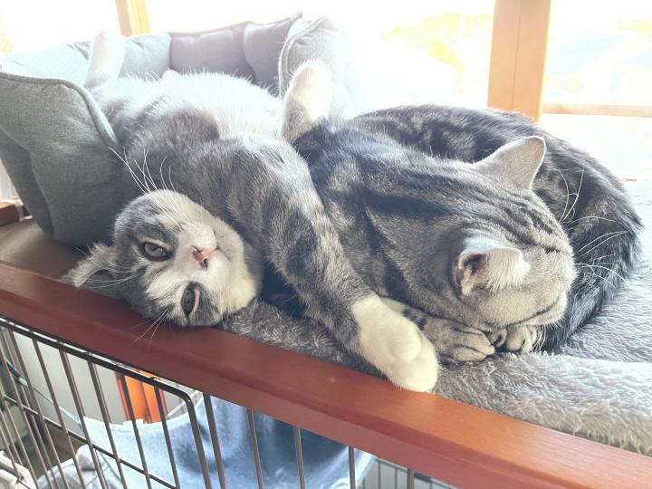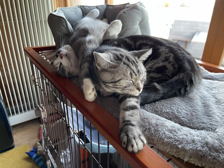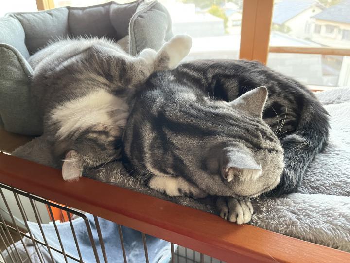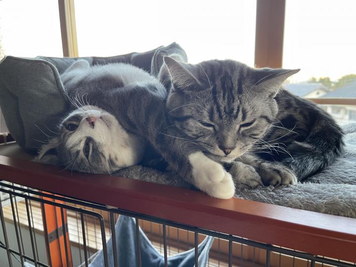 いや自己完結してもいかんのですが、今日初めて我が家でもコタローとぶんたが少しくっついて眠っていました!