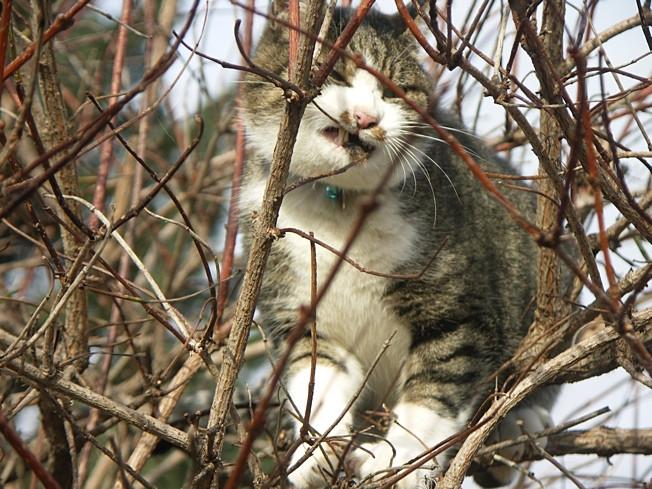 低気圧通過後の翌日、晴れて強風の中家の周り(自分のテリトリー)を見回っているところ。