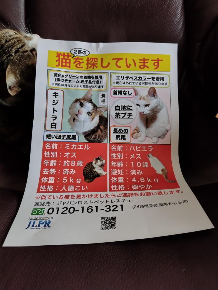 こちらはハビエラとミカエルのポスターです。この子達を見かけた方、どうぞご連絡ください。宜しくお願い致します。探偵さん曰く、車のエンジンルームに入ってどこかに行った可能性があるとのことです。どうぞ宜しくお願い致します。