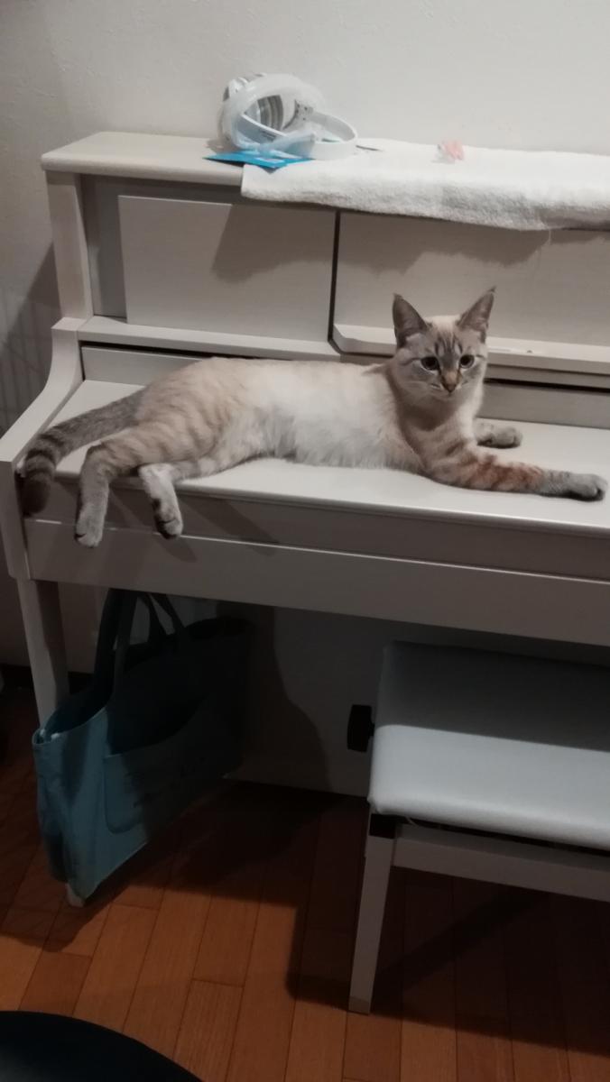 新年明けても変わらず、お気に入りのピアノの上でくつろいでおります。