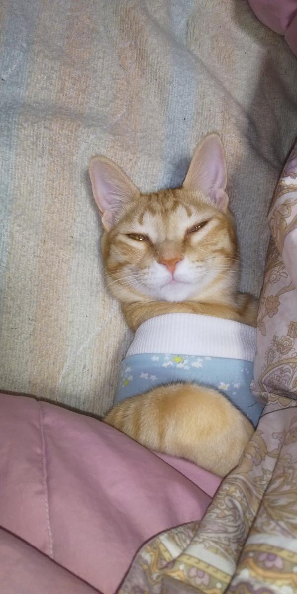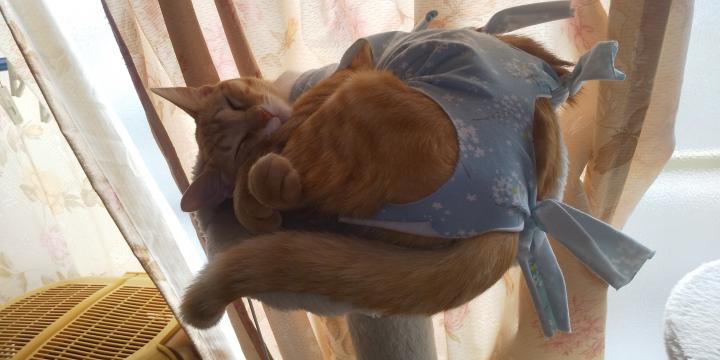 お腹の毛、ツルツルなので余計に寒そうかも…