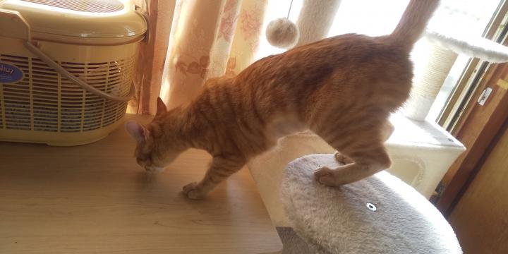 昼間はキャットタワーの一番上、暖房の風と窓からの日差しが当たる場所がお気入り💕