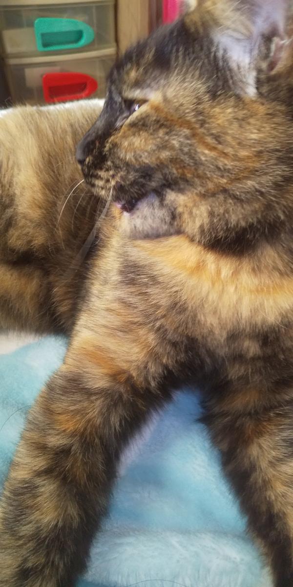 最初の子もサビちゃんだったけど、最初はシルバーグレーのスモークだったのが年を取るにつれ柄が出て来て、ベージュの色も入って来ました。
