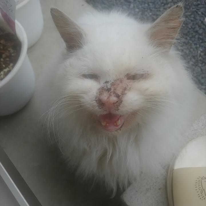 前回は先週、目クソまみれでそこから炎症をおこしたのかカサブタでお顔が真っ黒に⋯