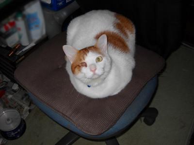 いつも通りPCに乗ってますが、足がピンと伸びてます。