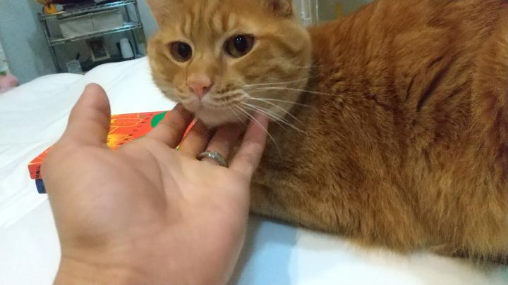 結果、ムギ様はちゅ~る先生の前に快く負けて下さり、おさわりを許可頂きました☺️忝ないです🤲ムギ様。
