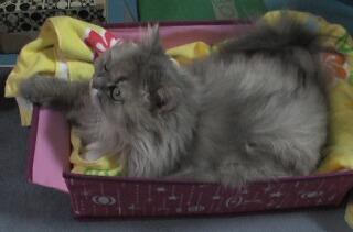 『少し寒くなってきたからね…』とママが温かそうなバスタオルを以前紹介したと思う~【300円箱】に敷いてくれたの♪
