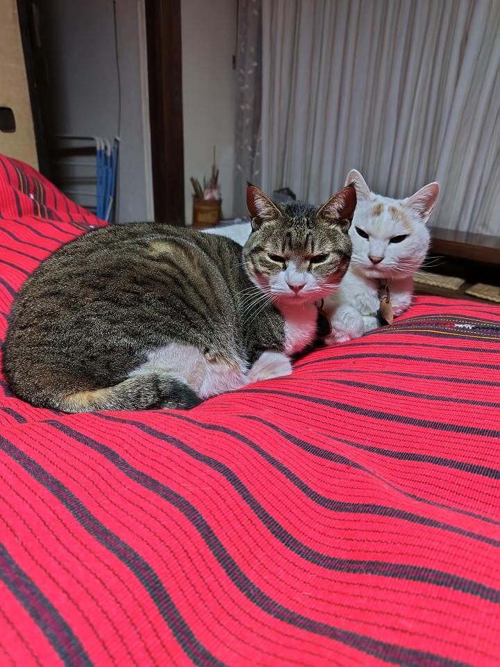 ハビエラが戻って来て3週間以上経ちました。ガリガリに痩せていましたが悪いところもなく少しずつですが体重も戻って来ました。マチルダと一緒にガン見してます。