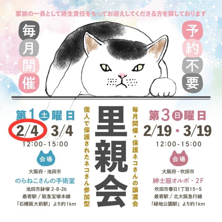 2月4日池田市のらねこさんの手術室で行われる譲渡会参加させてもらうことにしました❣️